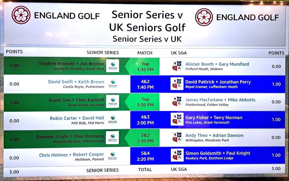 Royal Norwich Hosted our Inaugural match with the England Seniors Series scratch team. The weather threatened but held off for an excellent 2 day, Ryder Cup style match on the same week as the real thing.